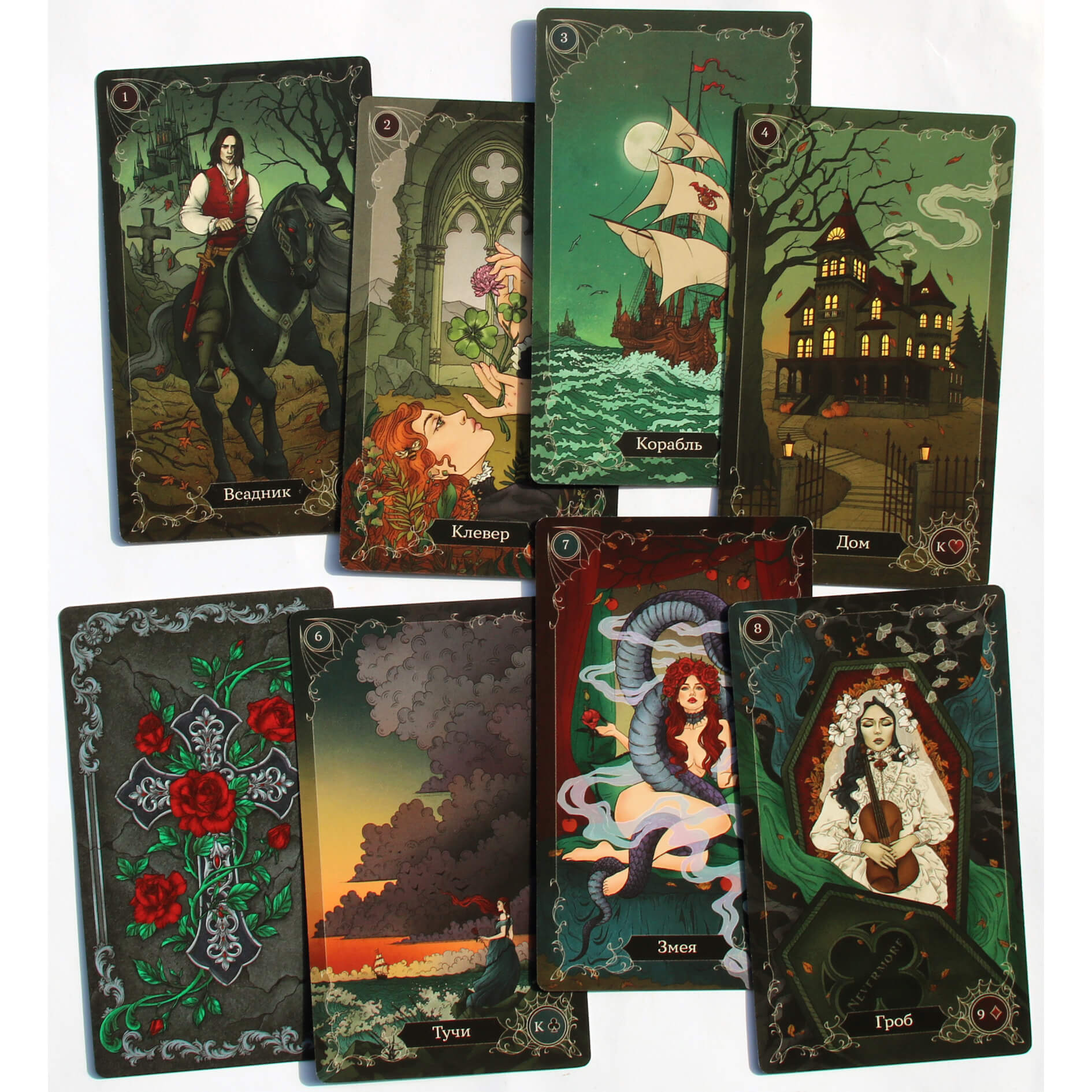 • 36 карт классического Малого оракула Ленорман в романтичном и таинственном готическом стиле.