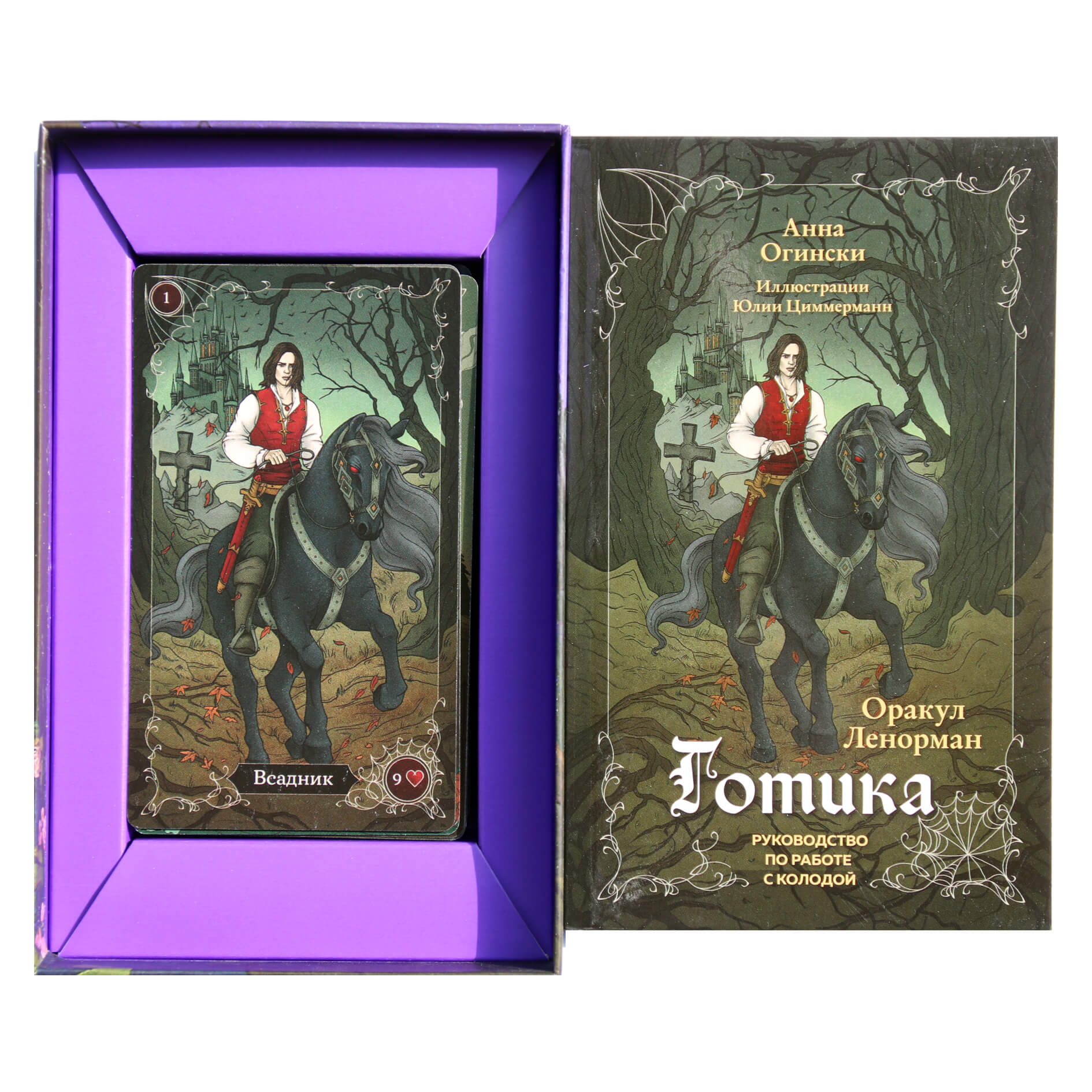 ЮЛИЯ ЦИММЕРМАНН — архитектор по образованию и всегда увлекалась эзотерикой и символизмом в искусстве, а также занималась портретной иллюстрацией. Ее увлечения нашли свое отражение в образах оракула Ленорман «Готика» и колоды Таро «Новое Таро Уэйта».