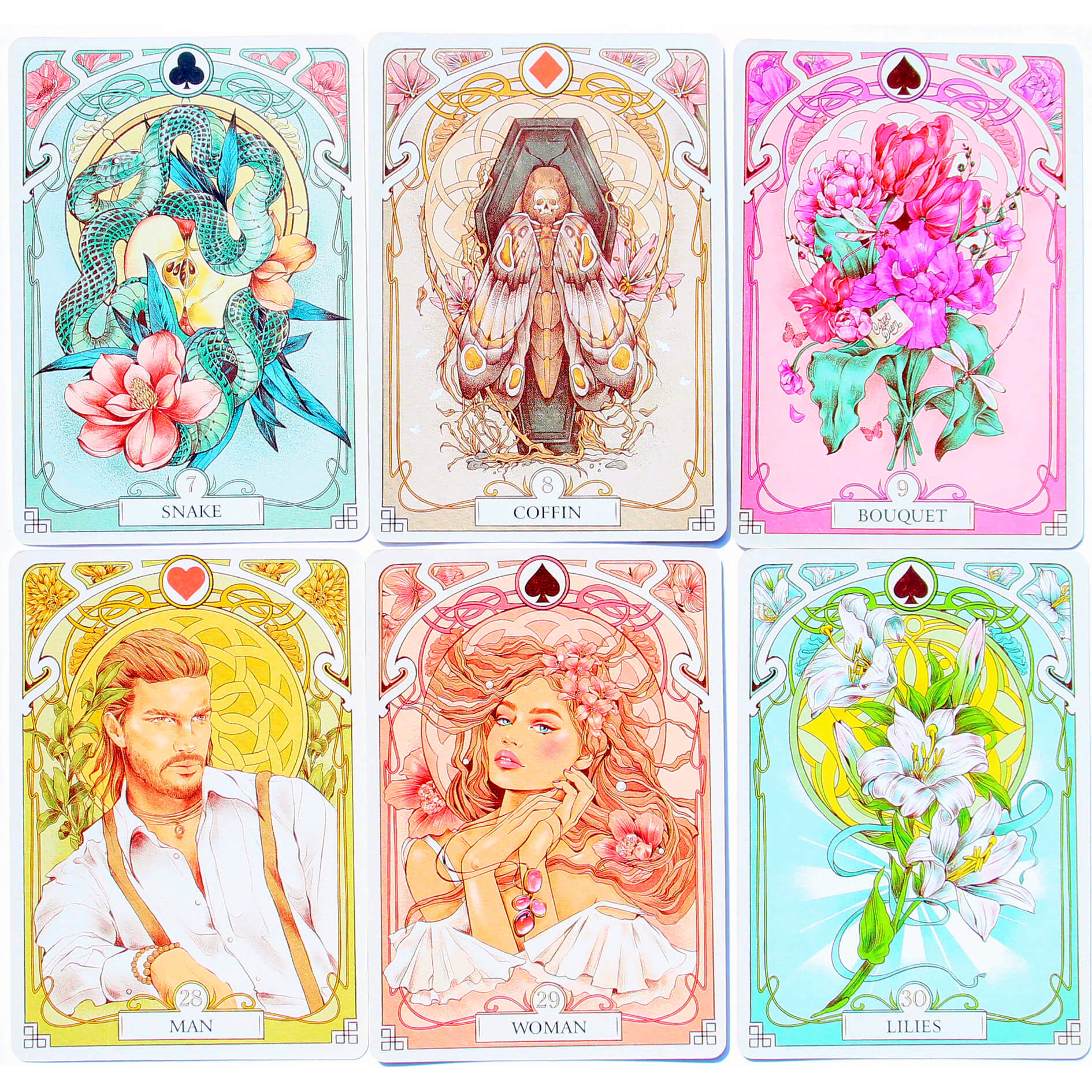 Ateities būrimo rinkinys „PASLAPTAS SODAS“: Mažasis Lenormand Oracle - Art Nouveau stiliaus 37 kortų kaladė, sukurta dailininkės Marina Miranovos.; Anna Oginski vadovas su išsamiomis visų kortelių interpretacijomis, įskaitant simboliką, temines reikšmes ir kortų derinius; „Pelėdų“ ir „Paukščių“ kortelės vienoje kaladėje, kad būtų galima tiksliau išdėstyti.
