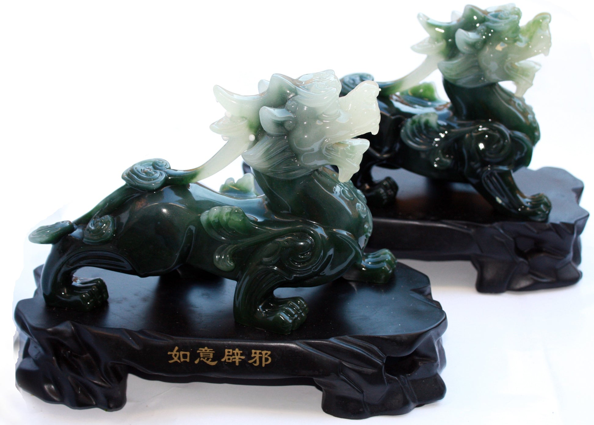 Šioje figūrėlių poroje pavaizduoti Shih Tzu, Imperatoriškieji liūtai, Feng Shui stiprybės ir apsaugos simboliai. Ant stovo pritvirtinti liūtai atrodo didingai ir galingai, pasiruošę apsaugoti erdvę nuo neigiamos įtakos ir piktųjų dvasių.