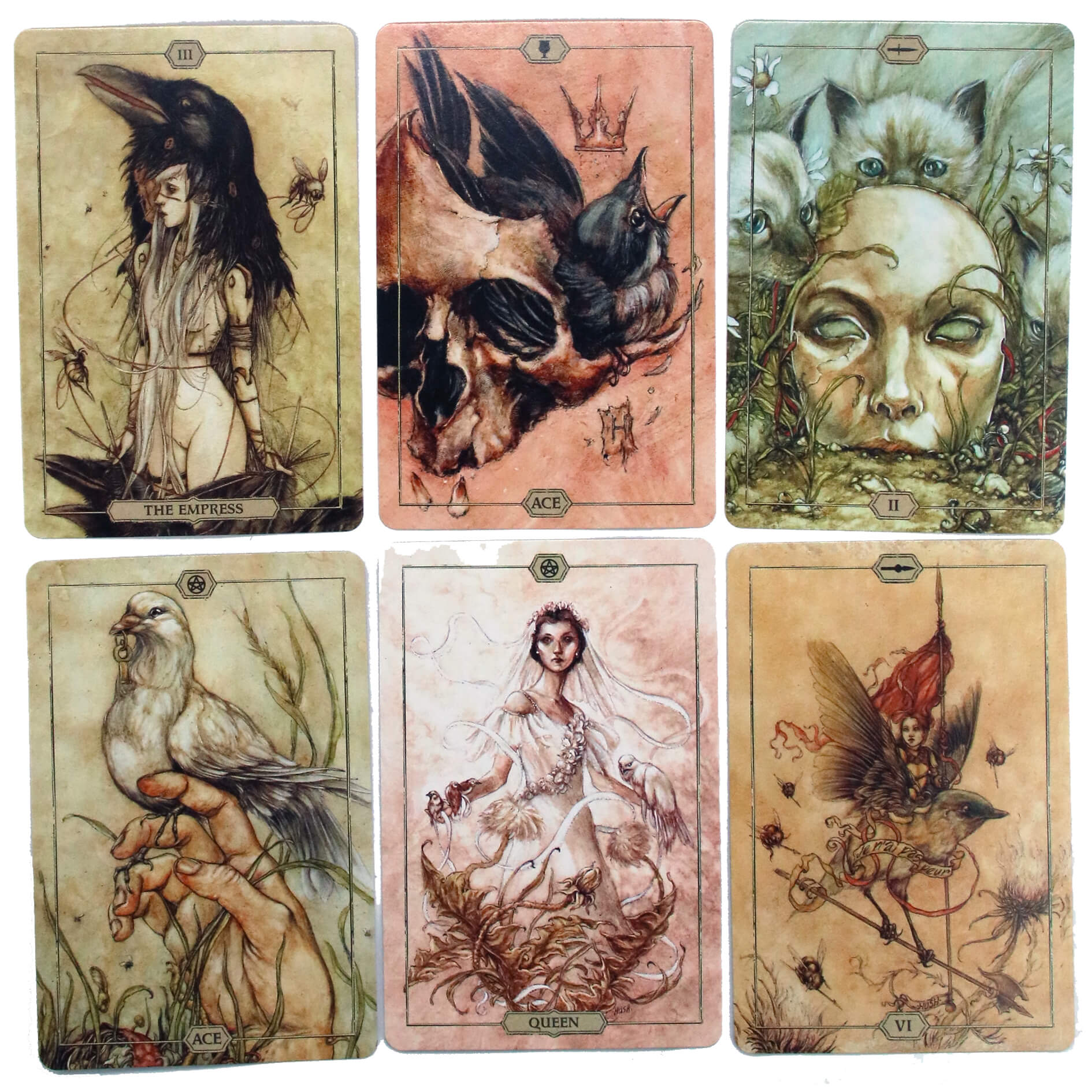 Карты Таро Тишины (Hush Tarot, Гадальные карты Хаш Таро) призывает исследовать заманчивый мир, в котором объединен дух животного и человека. В Картах Таро Тишины даже самые маленькие существа, такие как вороны и зайцы, имеют большое значение. Карты Таро Тишины (Hush Tarot, Хаш Таро) предлагают сдвиг в перспективе, который дает глубокие ответы на загадки жизни.