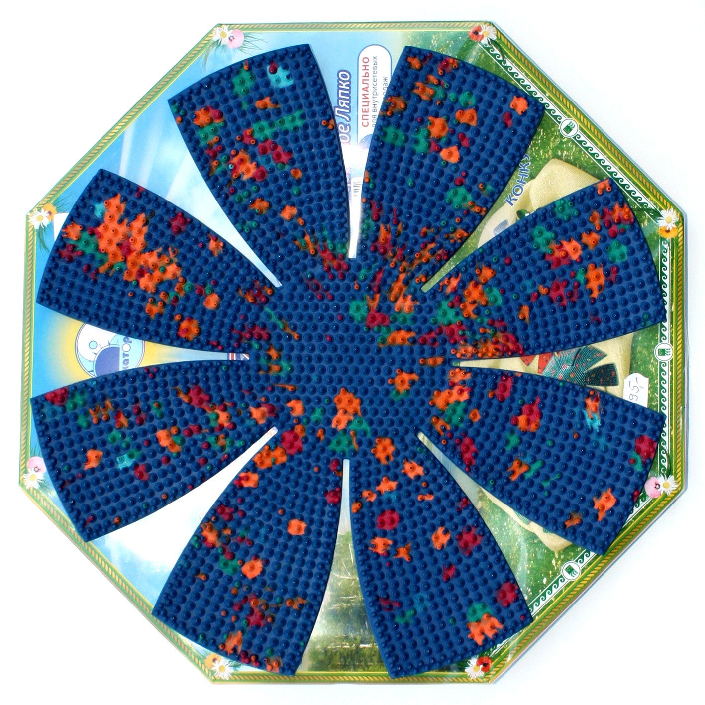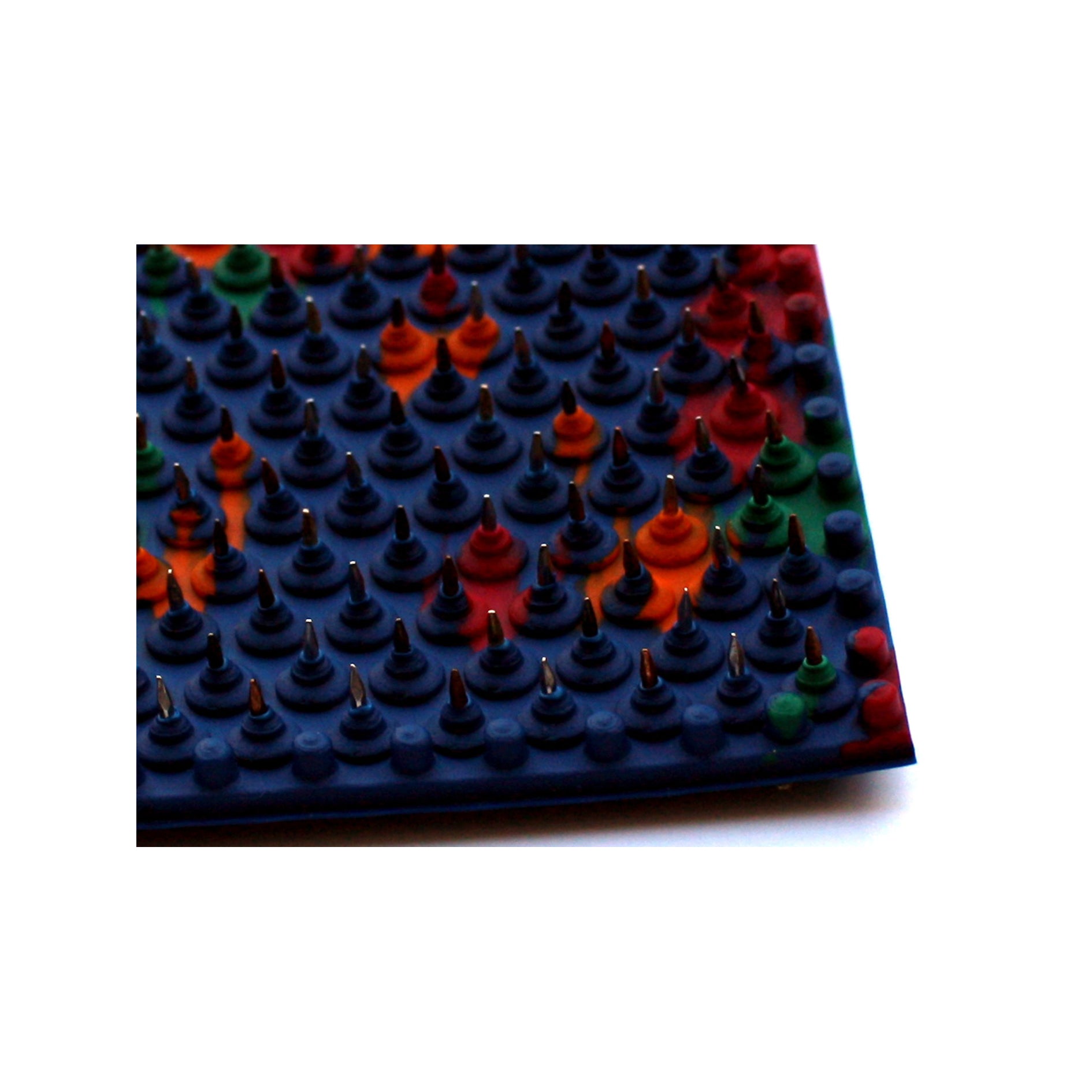 Аппликатор Ляпко коврик, представляет собой гибкую, но очень прочную пластину из медицинской резины высокого качества, на которой закреплены металлические иглы пяти металлов: серебра, меди, никеля, цинка и железа.