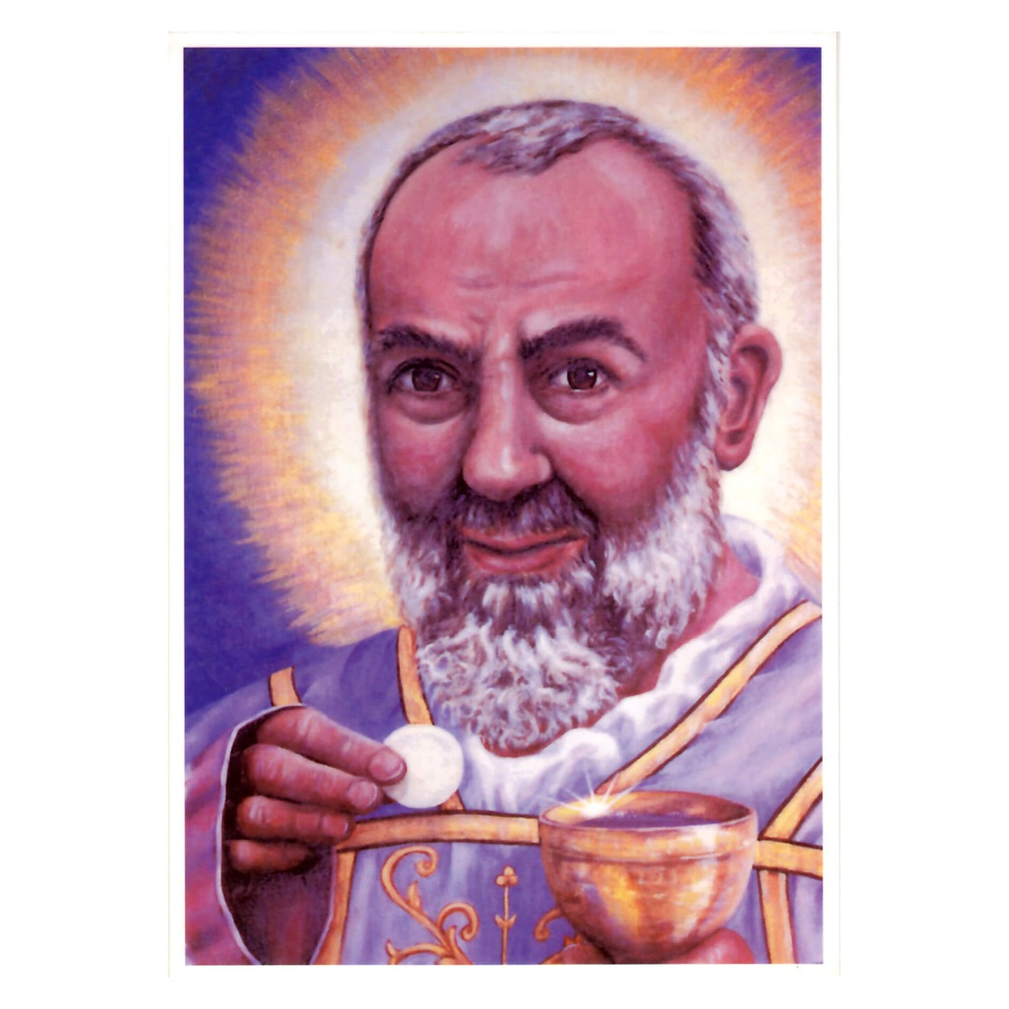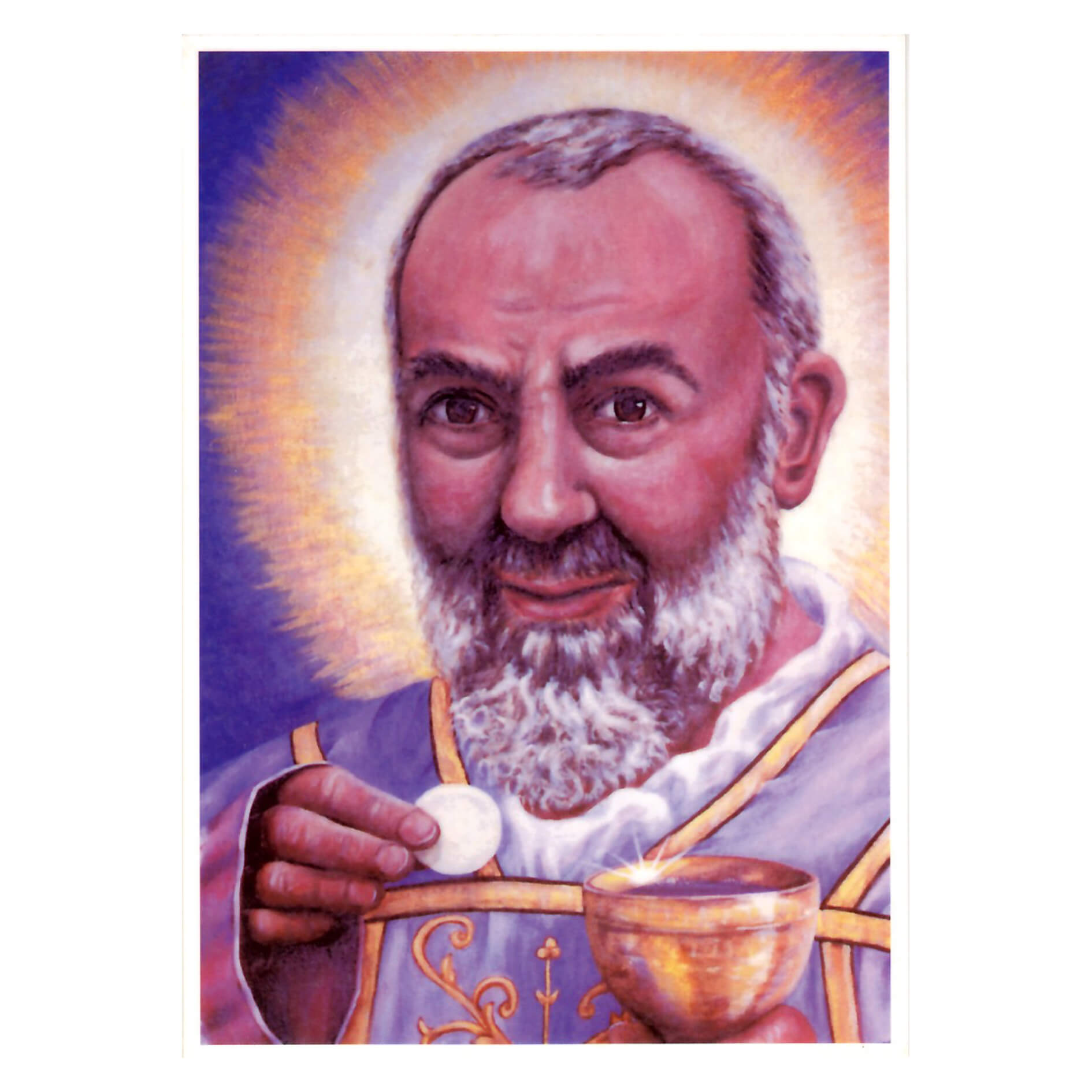 С обратной стороны есть молитва к Падре Пио на русском и английском языках.