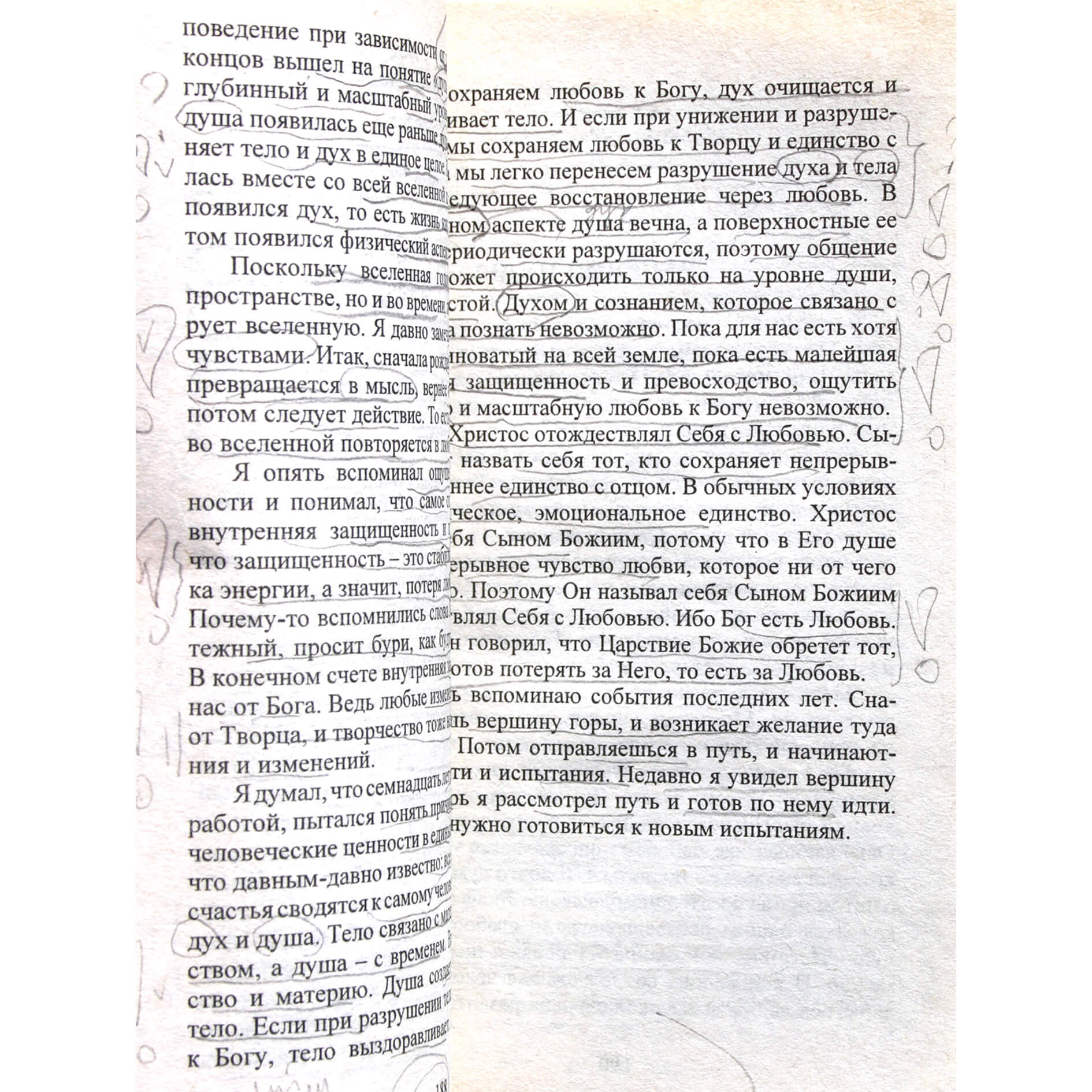 на некоторых страницах есть подчёркнутые карандашом слова и пометки