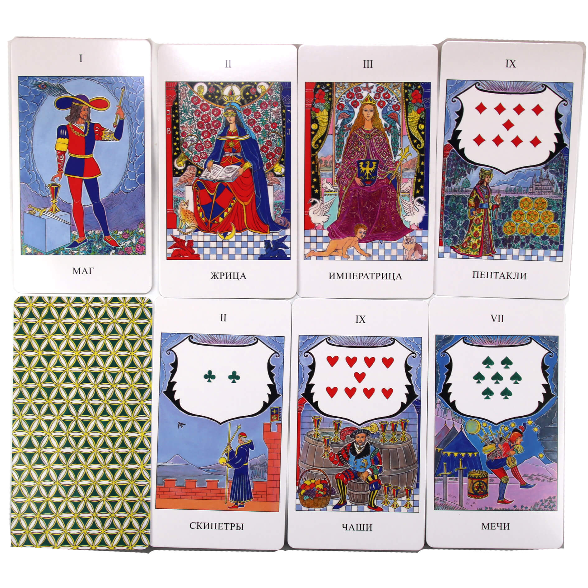 Эта необычная колода объединяет в себе три классические школы Таро — итальянскую, французскую и английскую. В сопроводительной брошюре автор показывает, как сочетаются эти традиции, делится своим опытом и рассказывает о символике и значении карт.