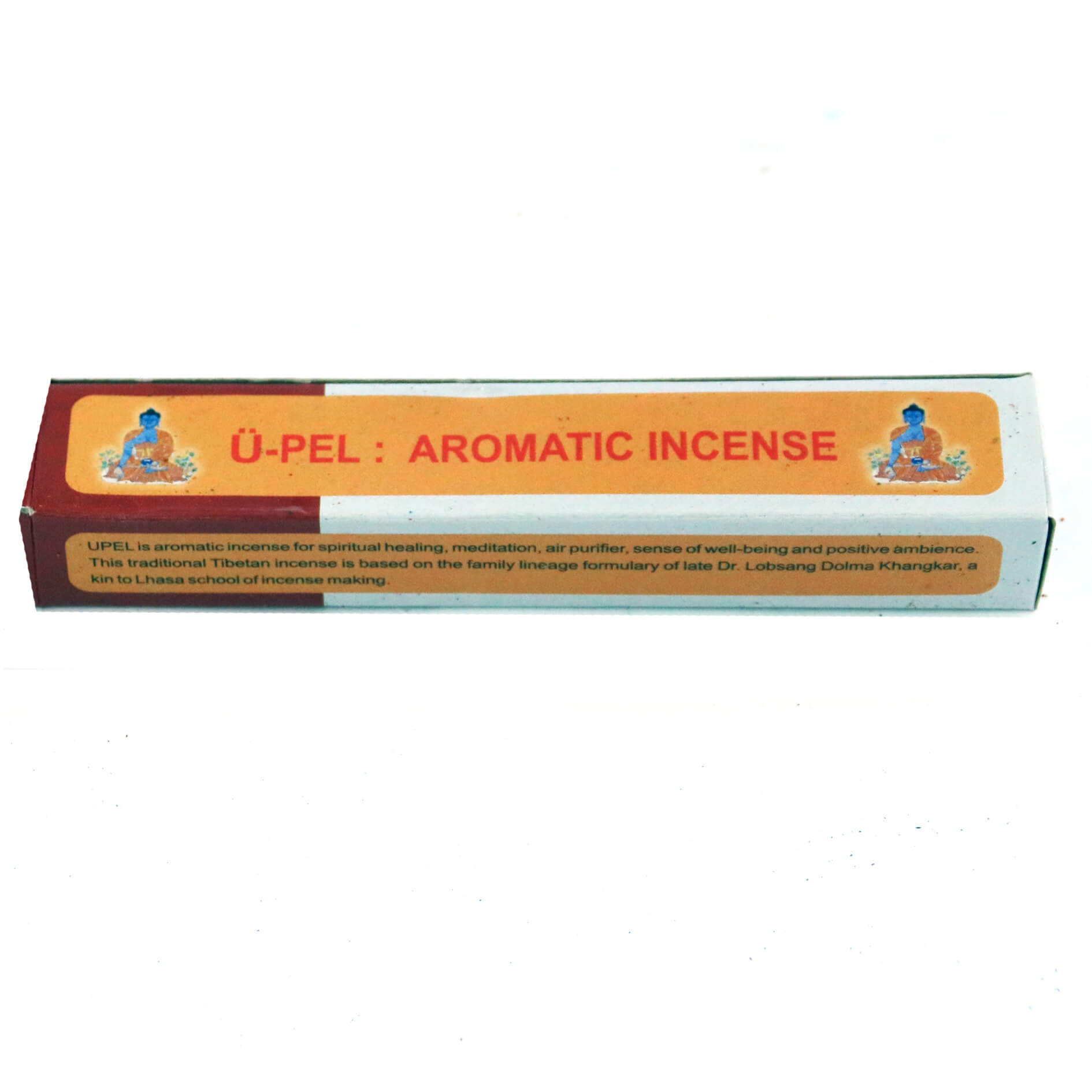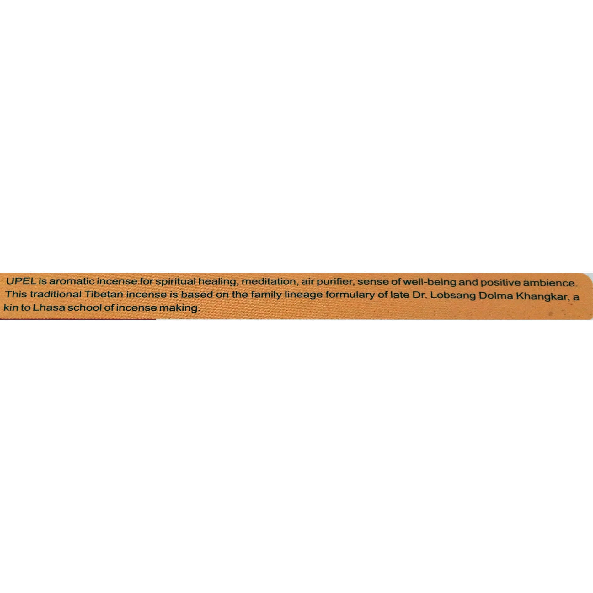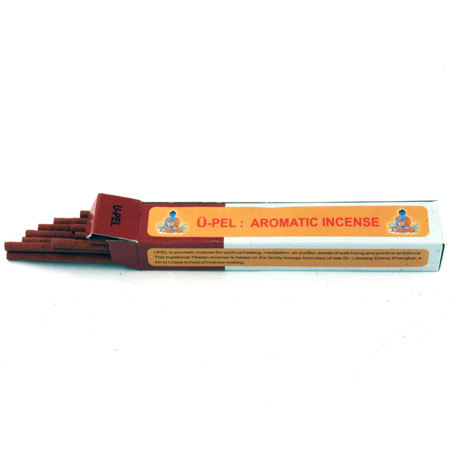U-Pel - это смесь шести горных трав и корней, благоприятных для духовной практики и целительства. Современный вариант этого благовония составляют из гималайского голубого лотоса, корней белого и красного сандалового дерева, благодаря чему оно является одним из самых ароматных.